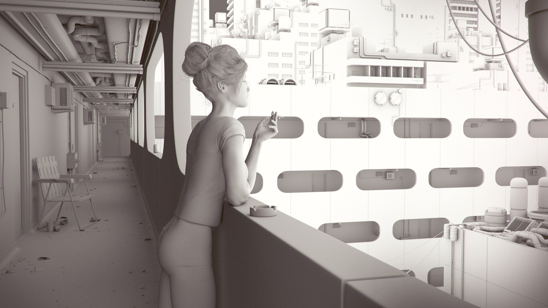 A sentimental cigarette break on the terrace of a condo in the heart of a megalopolis.