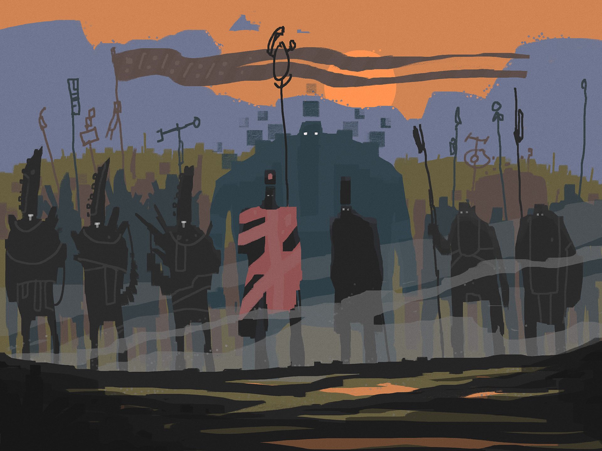 There is something encouraging about just sitting down and sketching ideas without thinking about all the technicalities behind them. Just one or two simple, blocky brushes and the image in your head that you want to get down on paper or screen as soon as possible.